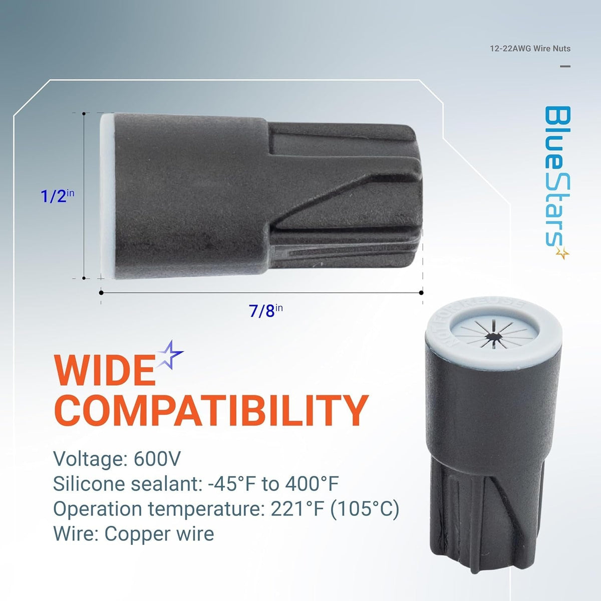 Waterproof Twist Wire Connectors Outdoor Electrical Nuts Caps for Sprinkler Led Landscape Wet Location Installation Black - Pack of 50