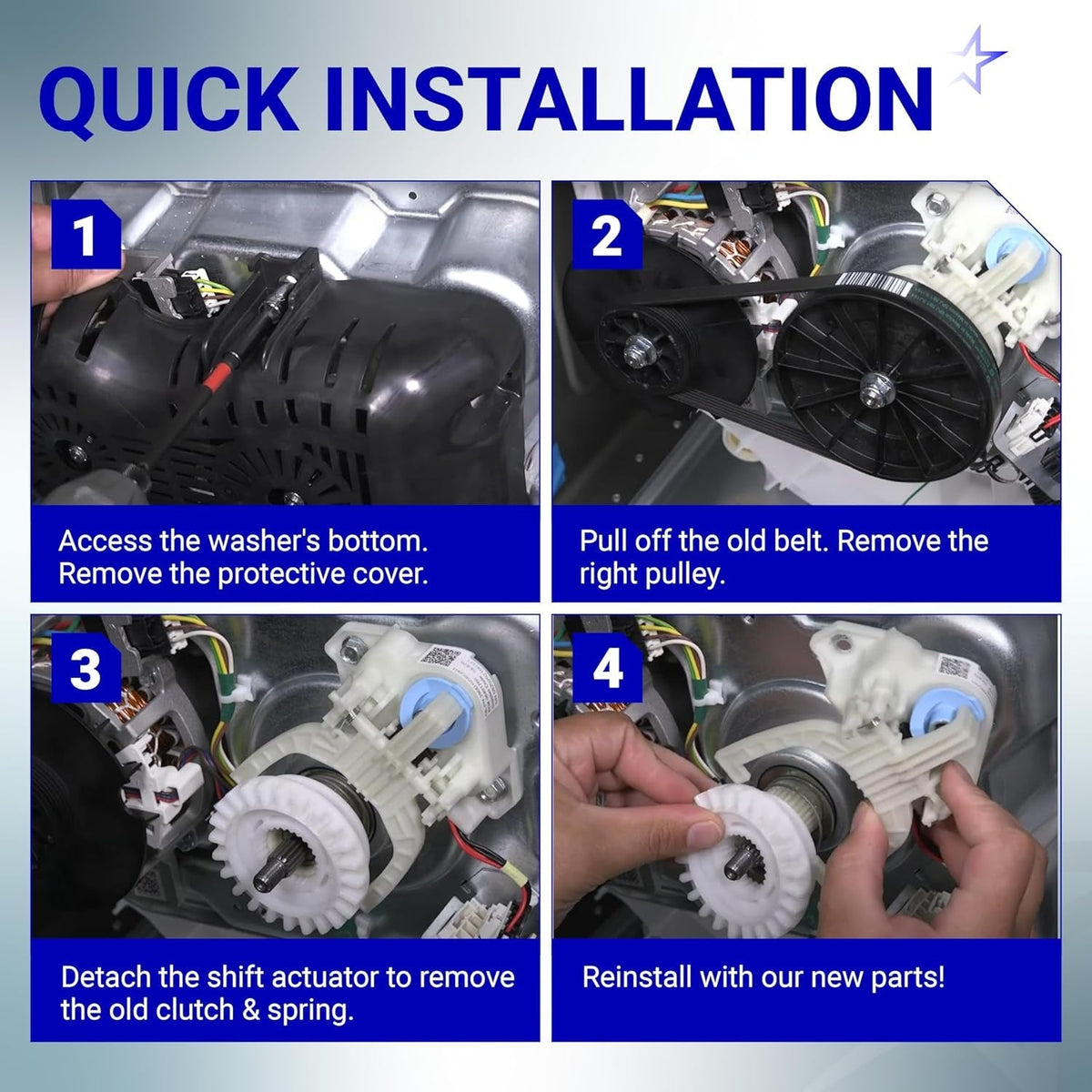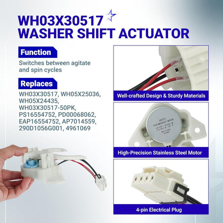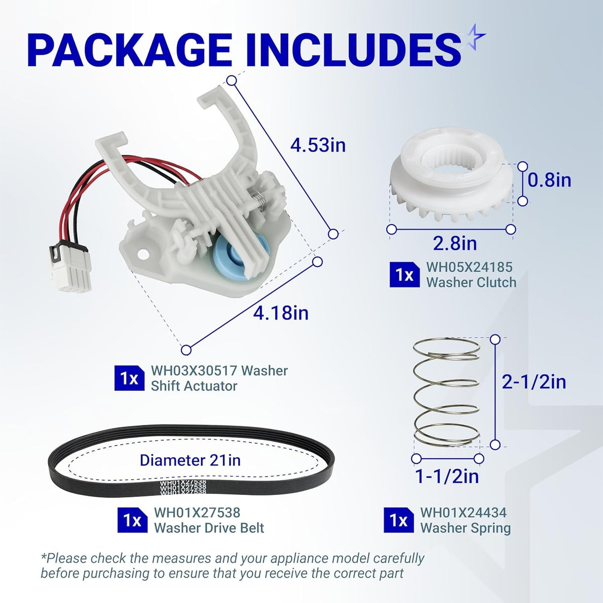 WH03X30517 Washer Shift Actuator & WH01X27538 Washer Drive Belt & WH05X24185 Washing Machine Clutch & WH01X24434 Washer Spring