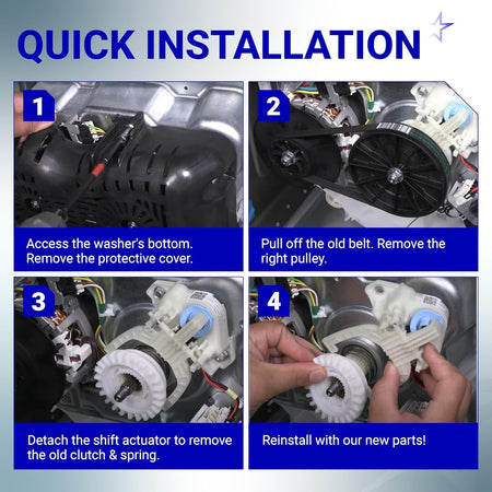 - Complete four-piece repair kit for washing machine drive systems.