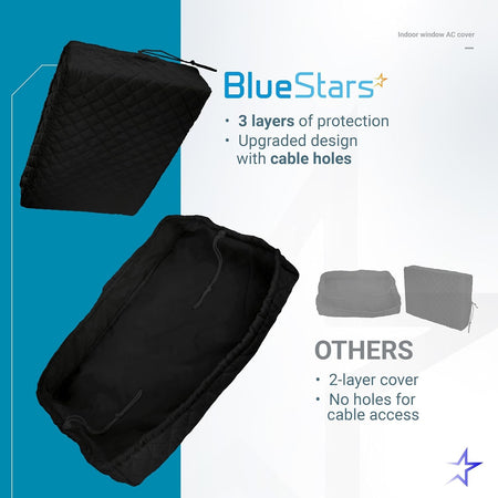 Window Air Conditioner Cover Indoor with Velcro Sides - Inside AC Cover for Winter - 17" x 13" x 3.5" - Black